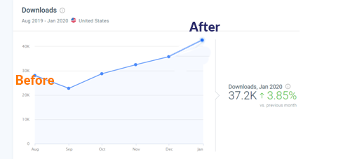 We implemented a lot of strategies, including picked the right set of keywords, selected an appropriate app name & description, and more to increase their app ranking. This graph clearly shows the drastic increase in ranking.
